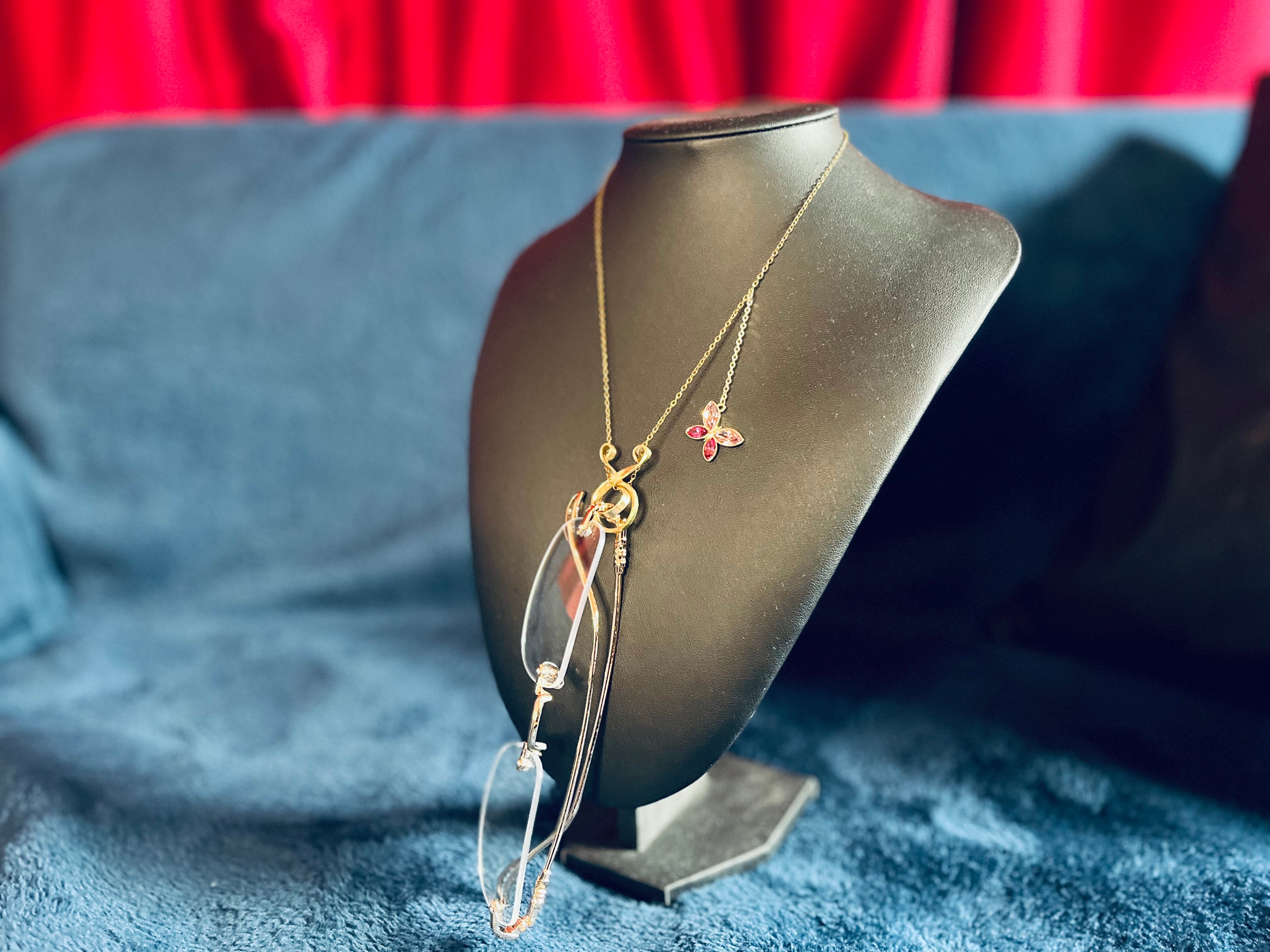 • 2WAYデザイン:中央のリングにメガネやサングラスを掛けるグラスホルダーとしてはもちろん、洗練されたロングネックレスとしてもご愛用いただけます。