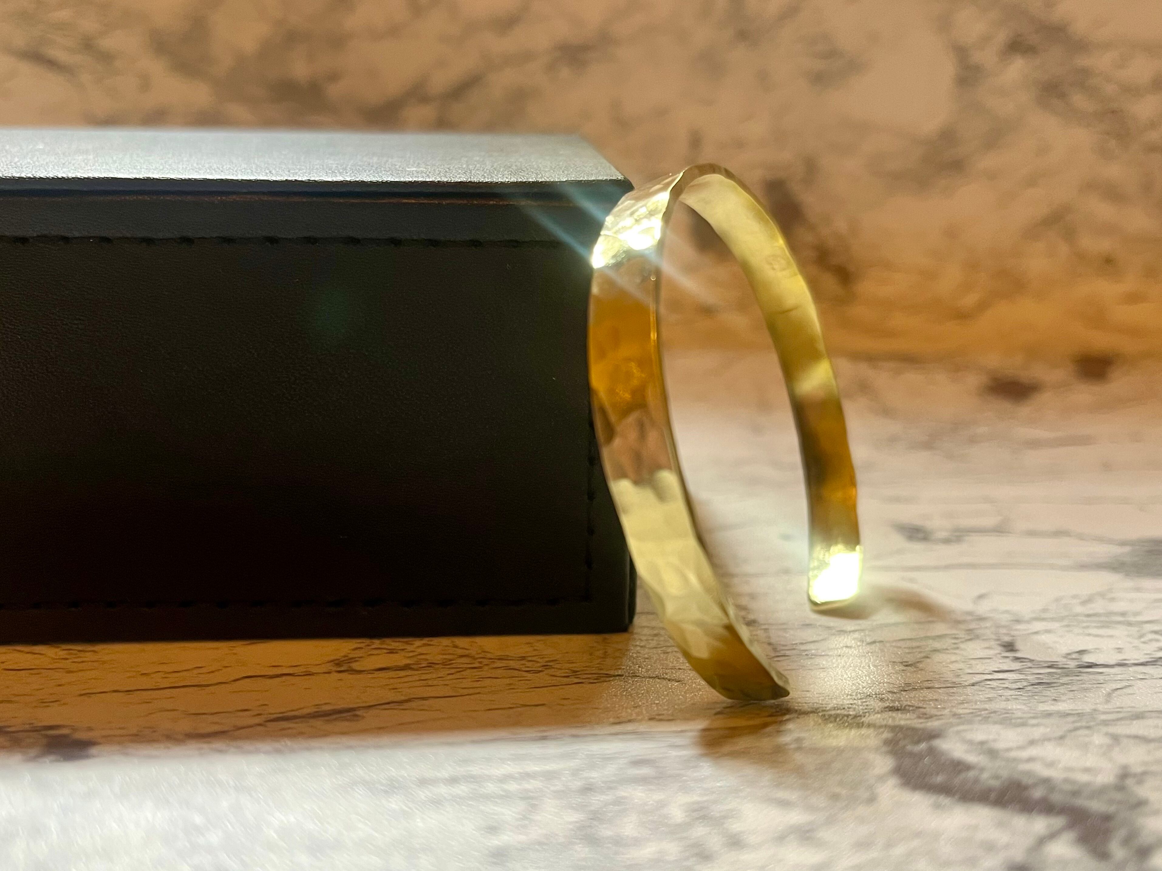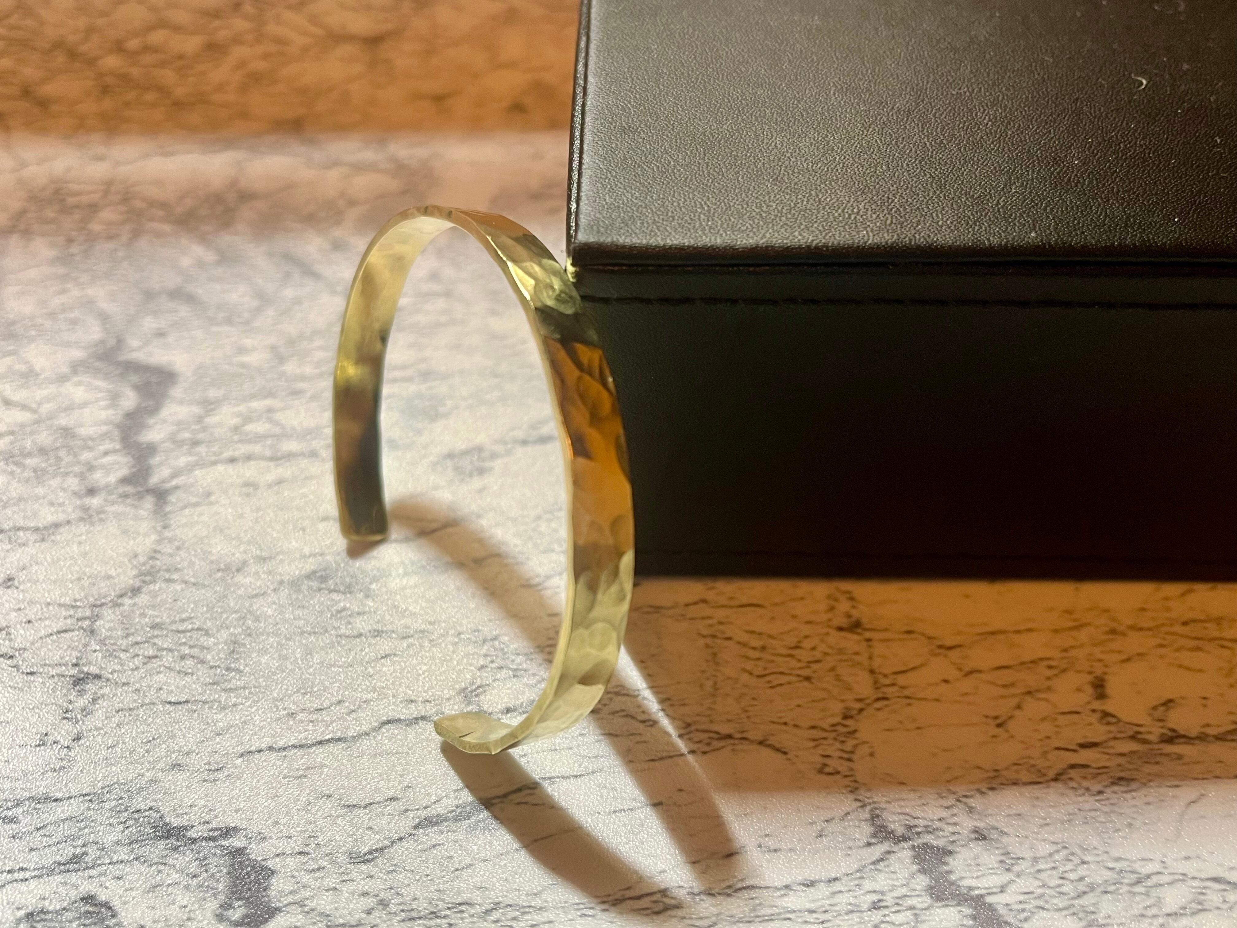 真鍮製でしっかり感のあるバングルは、凹凸のアクセントがポイント。