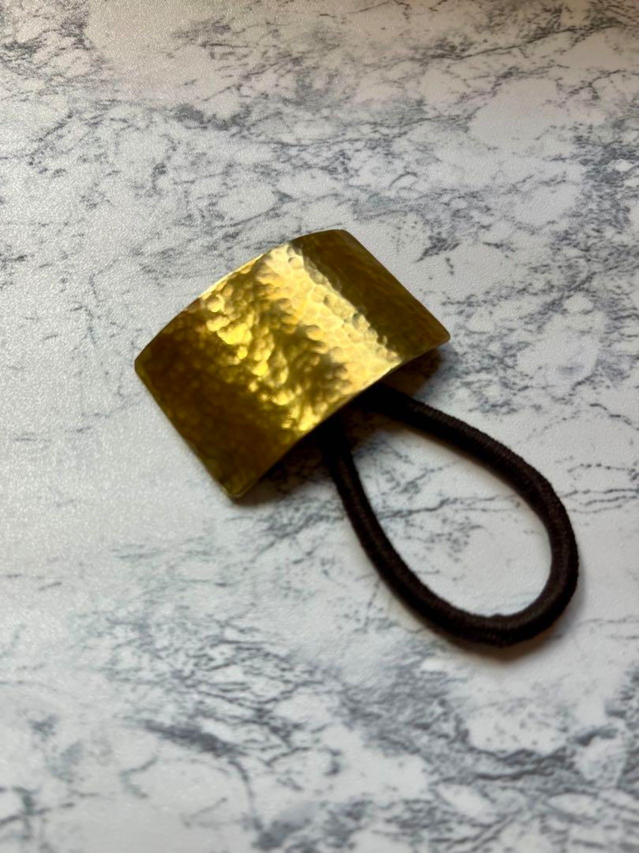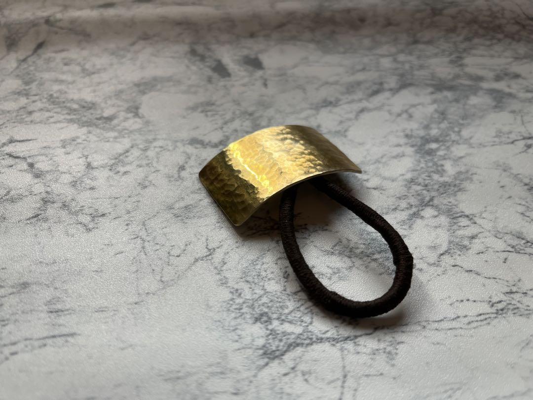 美しい槌目模様が施された真鍮製のスクエア型ヘアゴムです。